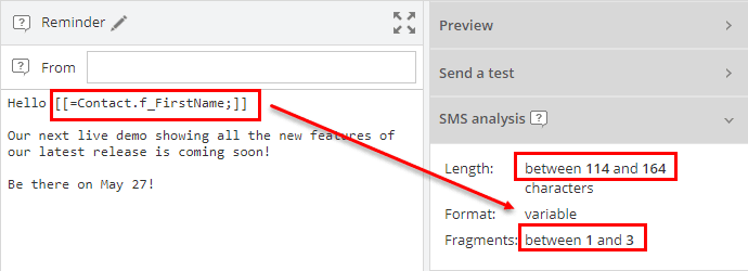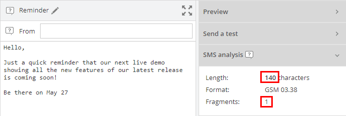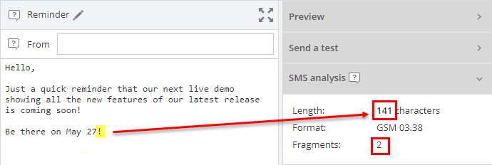 Indeed, the cost of sending an SMS is variable and depends on the number of fragments required to transmit the message. The system is designed to send the SMS in the most efficient way, but ideally, an SMS should contain only one fragment. That’s why we still advise you to stick to the basics and get to the point.