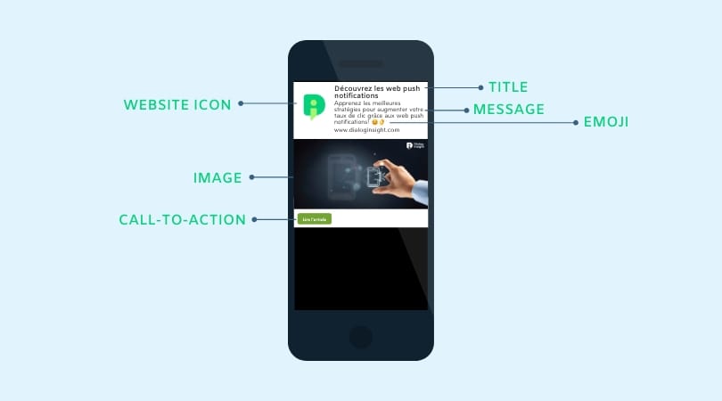 The message matches your value proposition. It should, therefore, be complementary to your title and explain the benefits of clicking on the notification. The text should be short, convincing and straightforward. It must also reflect the content of the landing page to which you are directing your contact.