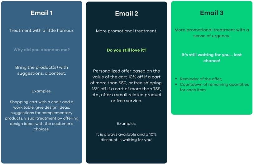 The key to success in this type of strategy is the speed of execution. The time between abandonment and the reception of the first email must be optimized for the best results.